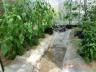 Um die Luftfeuchtigkeit im GH für Gurken + Chilis zu erhöhen , lege ich auf den Mittelgang Folie aus , und befülle diese mit Wasser.