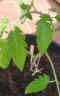 Die Tomaten im Mietgarten scheinen noch zu kämpfen. Sie kriegen erste grüne Blätter.