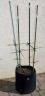 Ist aber auch preislich und logistisch anspruchsvoll. Aber vielleicht kann man sich bei einer Budet-DIY-Lösung daran orientieren....Solche Metallringe gib es im Bastelbedarf (reicht ja vielleicht einer oben, ansonsten Draht) und Bambusstäbe gibt es im Baumarkt.