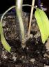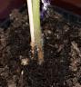 Gestern früh wunder ich mich dann, dass zwei Paprikas und eine Tomate so komisch krumm aussehen. Die Blätter sind kräftig wie immer, aber der Stängel sah direkt über der Erde wie abgeknickt aus. Ich guck näher hin... fast alle Pflanzenstängel sehen direkt über der Erde so ganz seltsam abgeschnürt und gräulich verfärbt aus. Die drei "abgeknickten" Pflanzen hingen quasi nur noch mit einer dürren grauen Faser am Wurzelballen. Der Stängel über dieser grauen abgeschnürten Stelle ist vielfach verdickt und aufgeplatzt. :crying: