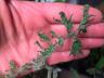 Folgende Ideen hatte ich: Zuwenig Wasser, zuviel Dehner Tomatenflüssigdünger, zuviel volle Sonne ohne Gewöhnung, zuviel Licht durch abendliche zusätzliche 4 Stunden Beleuchtung durch 250 Watt LED im Anstand von 50cm.