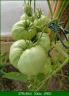 Marmande: die Früchte sind schnell herangewachsen, haben dann aber eine kleine Pause eingelegt. Jetzt plötzlich färben sie sich rot und es hängen auch sehr viele Früchte a 200g dran. In ca. 5 Tagen wird es soweit sein.